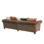 Le prix indiqué concerne le canapé 4 places version de base (en 2 parties assemblées), 8 coussins, en L 263 cm en tissu velours coco olive & cuir pleine fleur froissé Galveston Bark