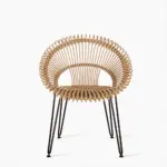 Osier polyéthylène sur un cadre en aluminium avec un piètement en enduit d’époxy et thermolaqué noir.